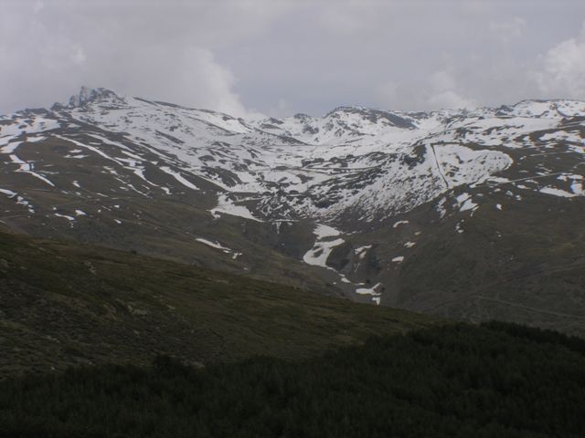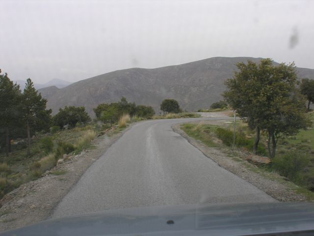 Bajando sierra nevada por carretera de montaña hacia el valle del Genil